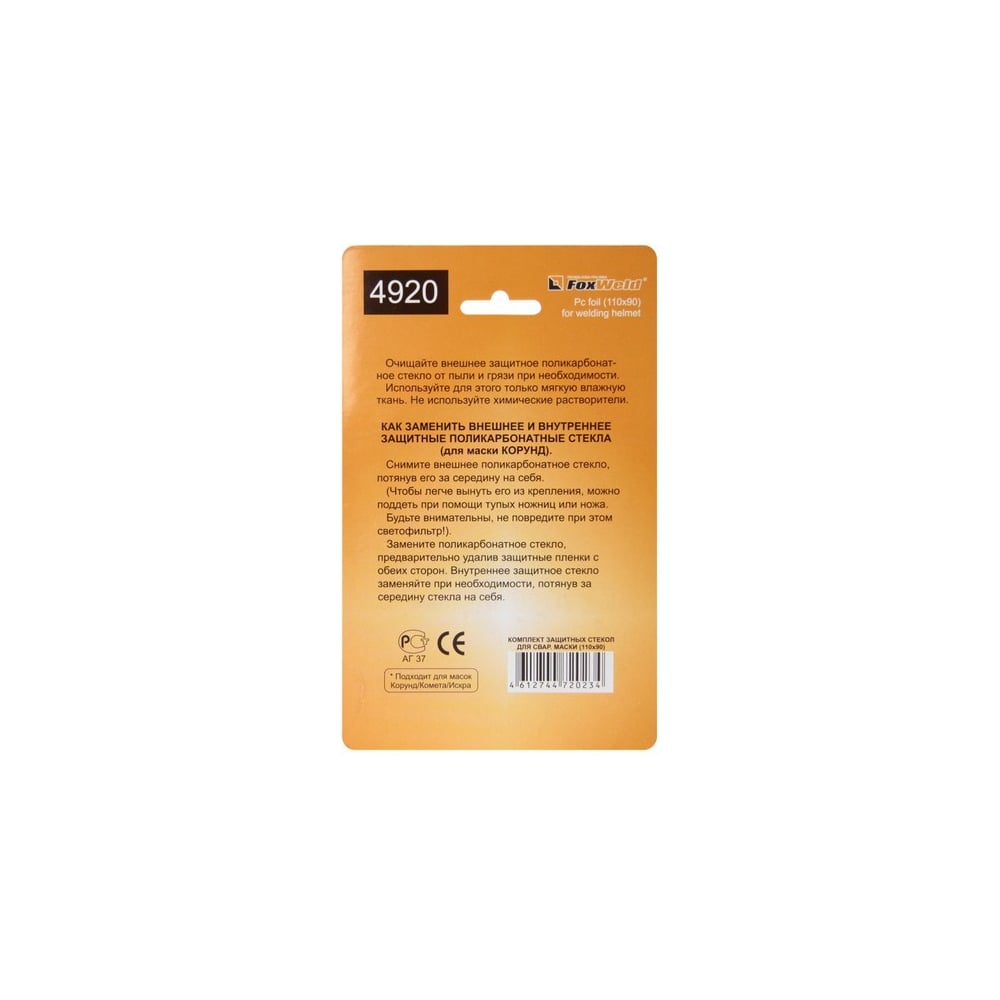 Комплект поликарбонатных стекол Foxweld №1 4920