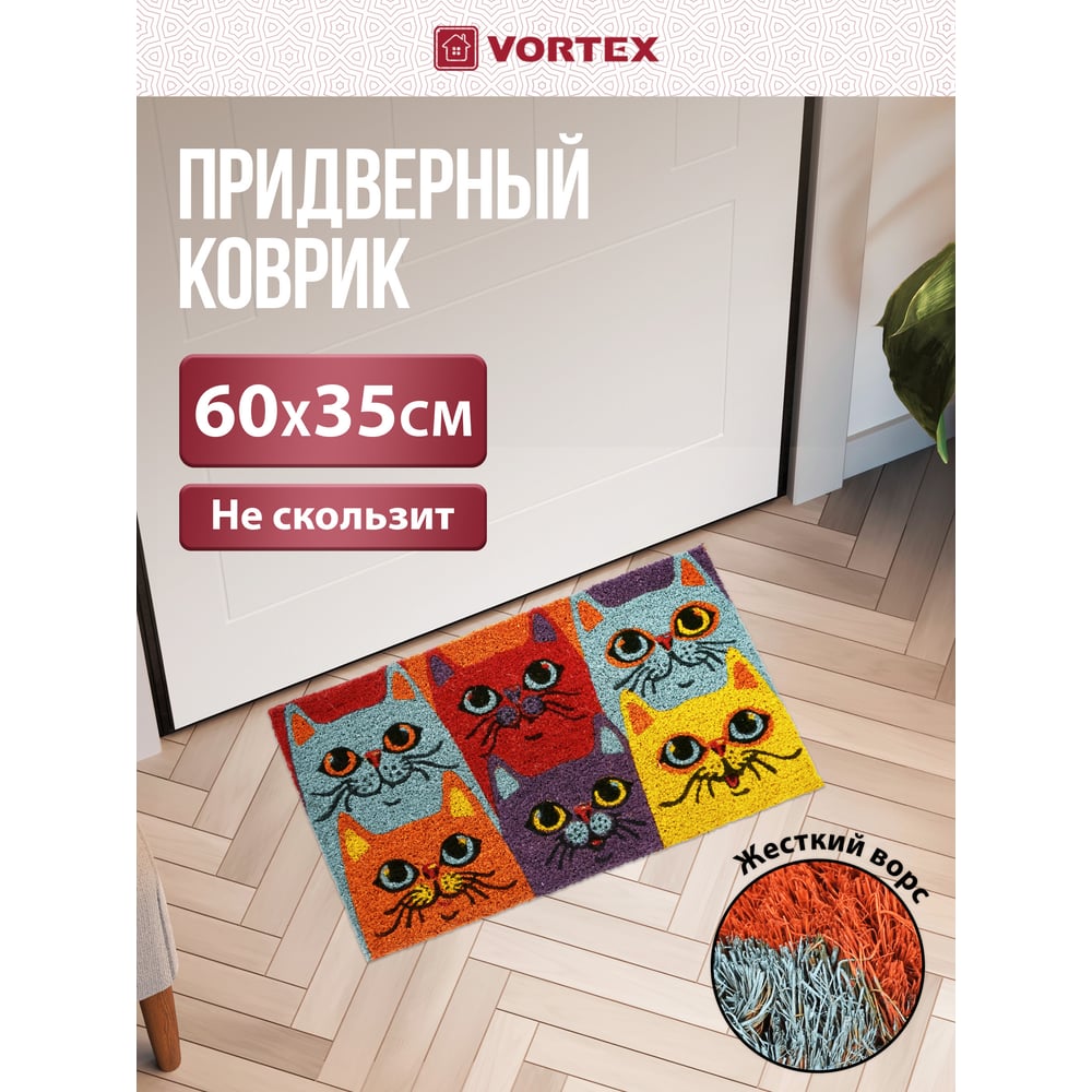 Кокосовый коврик VORTEX Котики ворс 15 мм, 35x60 см, на ПВХ основе 24337