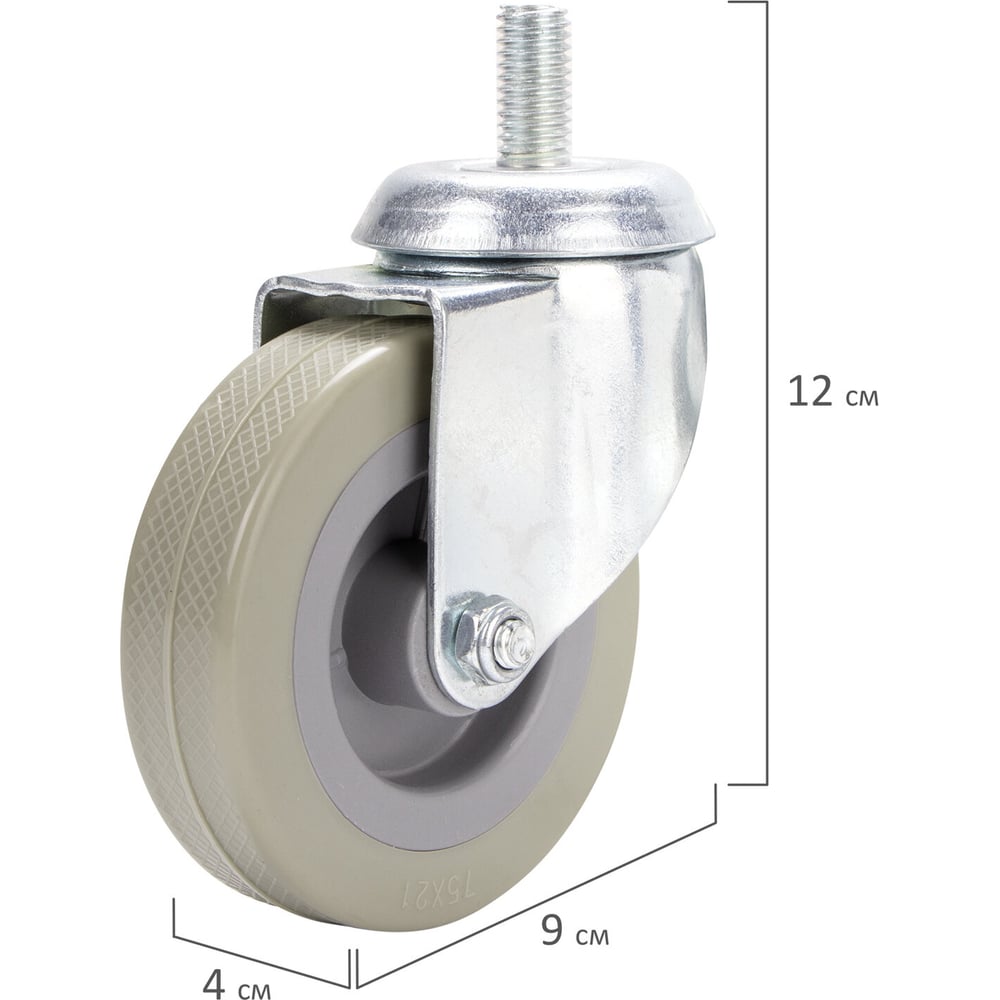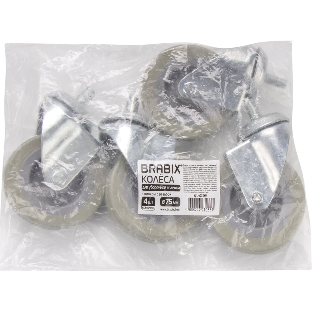 Колесо для уборочной тележки с штоком с резьбой (4 шт; 75 мм) BRABIX 605380