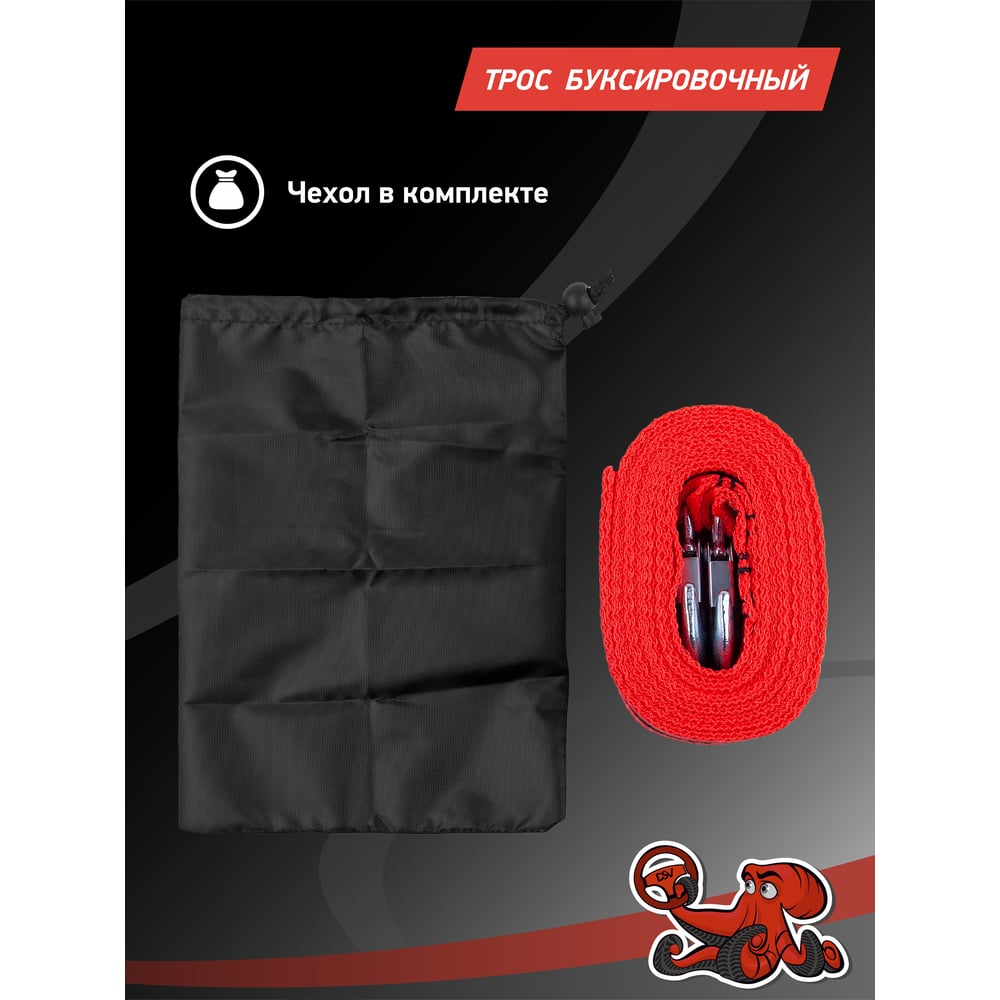 Буксировочный трос DSV 5 т, 5 м, лента с 2 крюками, в коробке с чехлом R88105