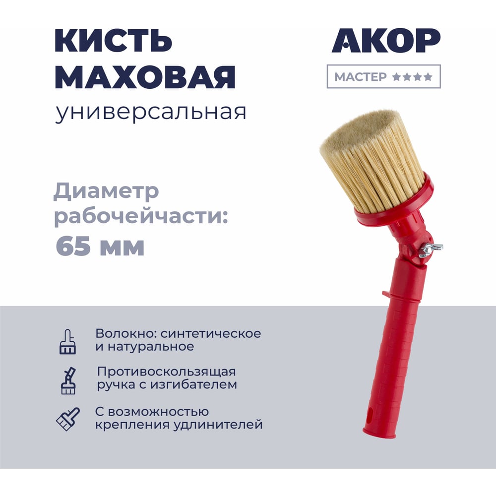 Кисть маховая универсальная Акор, диаметр 65 мм, с изгибателем, Мастер 150 00 065