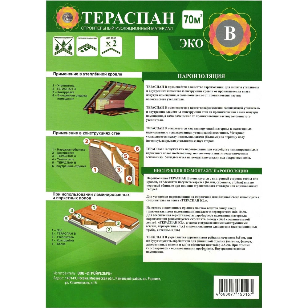 Пароизоляционный материал ТЕРАСПАН В ЭКО 70 кв. м 4660077150167