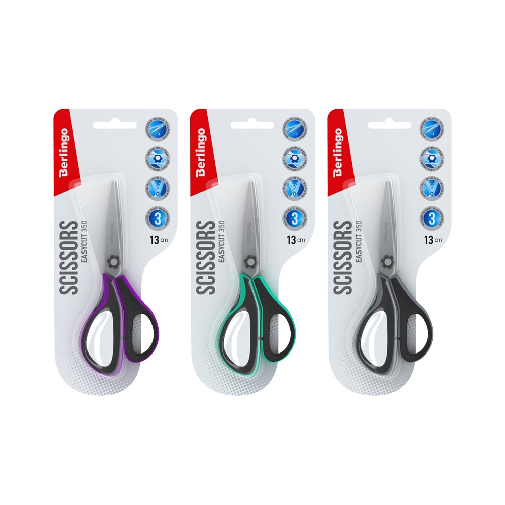 Ножницы Berlingo Easycut 350 13 см, ассорти, эргономичные ручки, мягкие вставки, европодвес DNn_13035