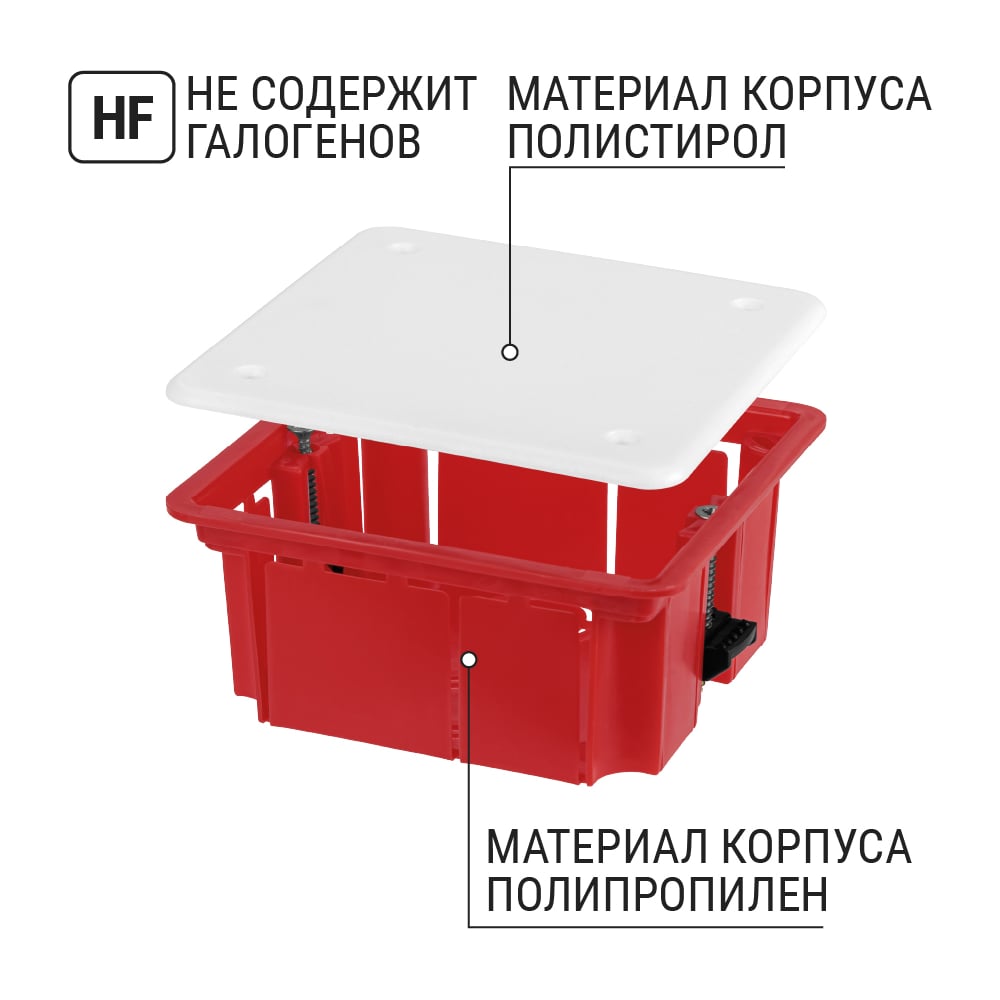 Длина 92 мм Материал пластик Ширина 92 мм Цвет красный/белая крышка Тип распаечная коробка Вес нетто 0.059 кг Назначение для гипсокартона и полых стен Количество в упаковке 1 шт Модельный ряд СП Глубина 45 мм Степень защиты 20 IP Конструкция квадратная с крышкой Min температура эксплуатации -25 °С Max температура эксплуатации 40 °С Max диаметр трубы 25 мм Внутренние габариты 92х92х45 мм Количество вводов 2 шт Тип проводки скрытая Для прямого монтажа нет