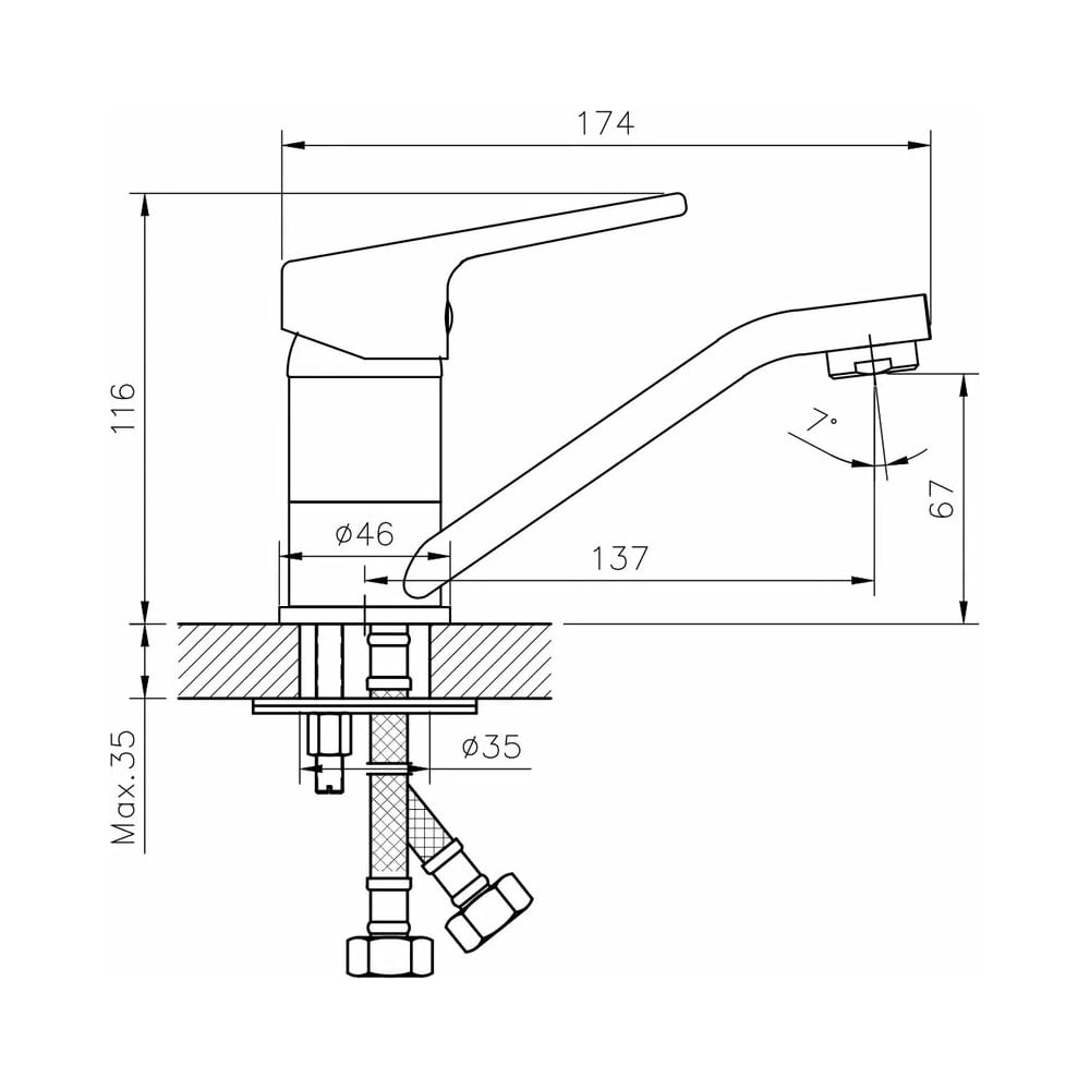 Цвет хром Тип установки настольный/на раковину Стиль современный Материал корпуса латунь Серия New Forest Поворотный излив да Назначение для кухни Тип крепления на шпильку Гибкий излив нет Длина излива 137 мм Высота смесителя 116 мм Лейка нет Термостат нет Встраиваемый нет Подводка в комплекте гибкая Аэратор да Переключатель на фильтр нет Тип смесителя однорычажный Форма излива воды традиционная Запорный клапан керамический картридж Форма смесителя плоская Выдвижной излив нет Излив есть Складной нет С щеткой нет Двойной излив нет Диаметр картриджа 35 мм Направление струи вертикальное Диаметр отверстия в раковине 35 мм Высота излива 67 мм Мах толщина столешницы 35 мм Расположение термостата без термостата