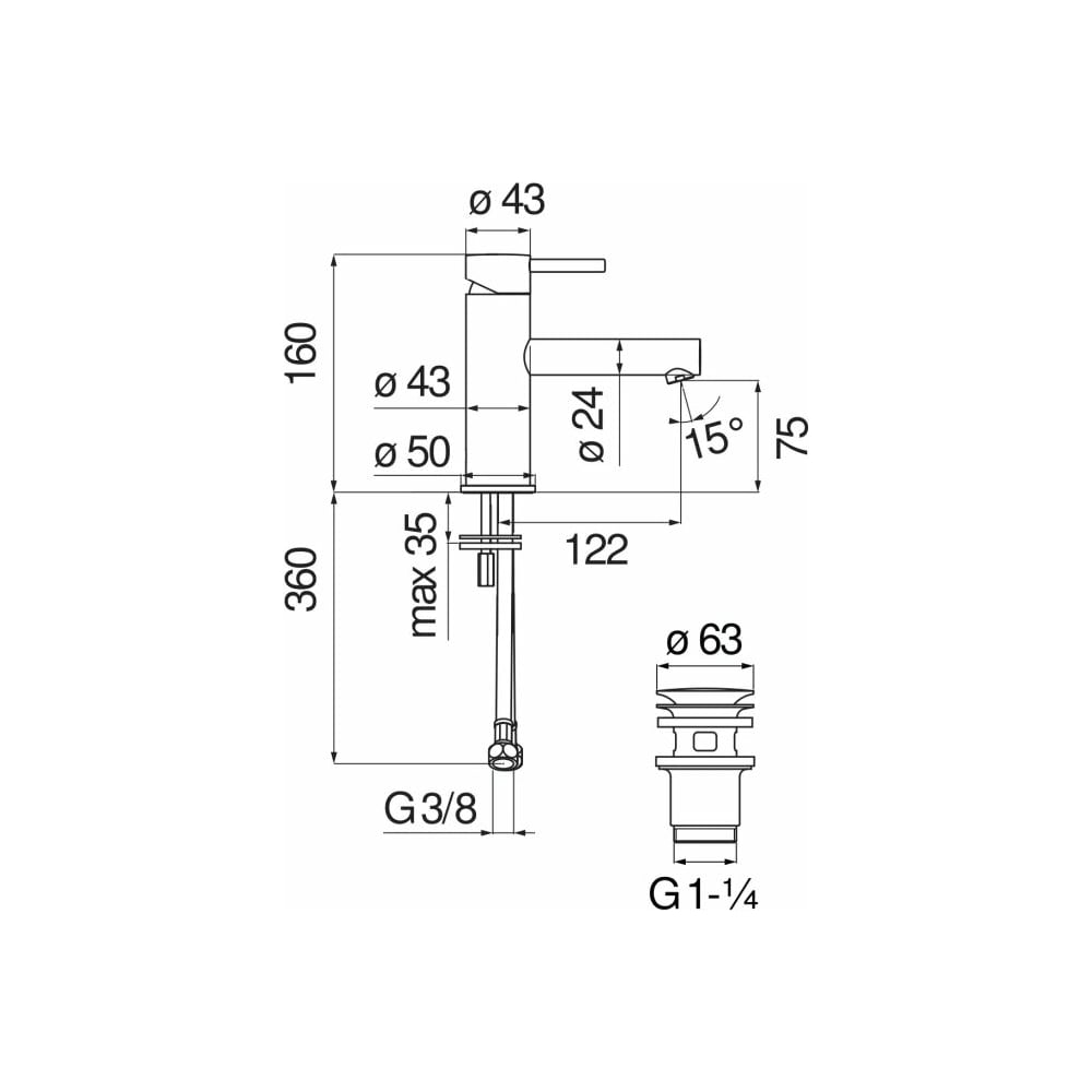 | Высота излива | 75 мм |