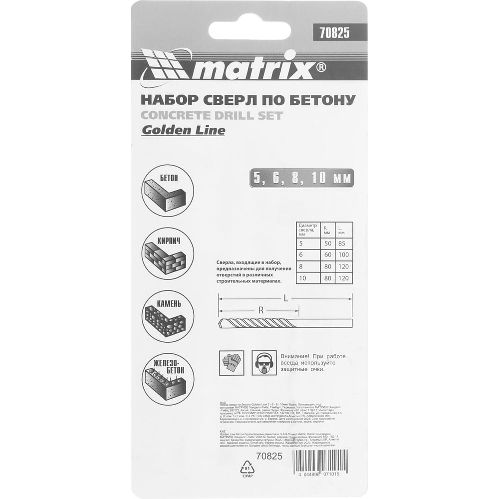 Набор сверл по бетону Golden Line (5-10 мм; 4 шт.) MATRIX 70825