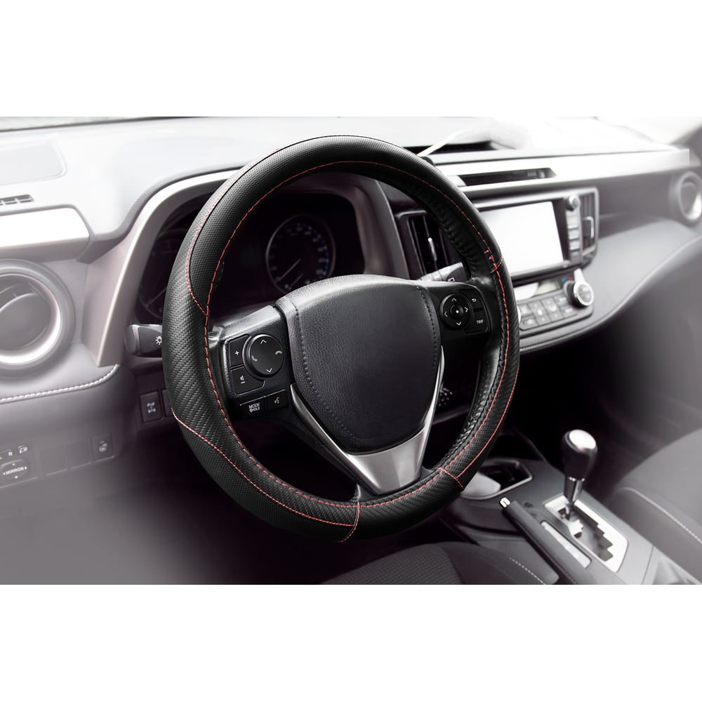 Оплетка KRAFT эко-кожа с текстурой карбоновых вставок, размер M, 38 см, черная KT 800346