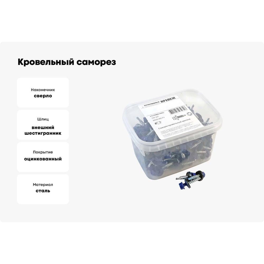 Кровельный саморез Качественный КРЕПЕЖ синий RAL 5005, 4.8х29 мм, 150 шт 0500149 КЧ