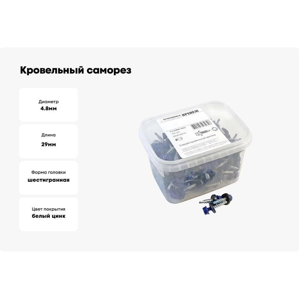 Кровельный саморез качественный крепеж 4,8/29 RAL5005150 синий (150 шт.) 0500149