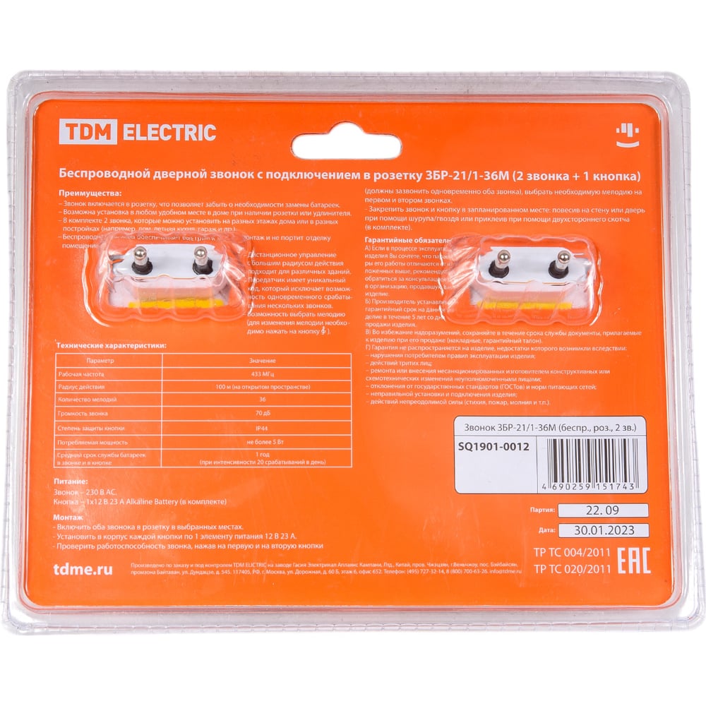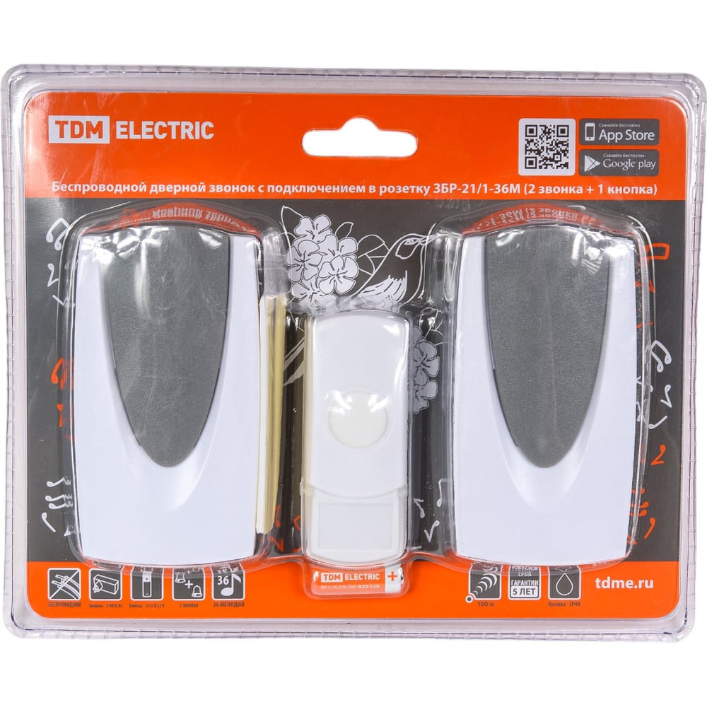 Беспроводной звонок TDM ELECTRIC ЗБР-21/1-36М 2 звонка SQ1901-0012