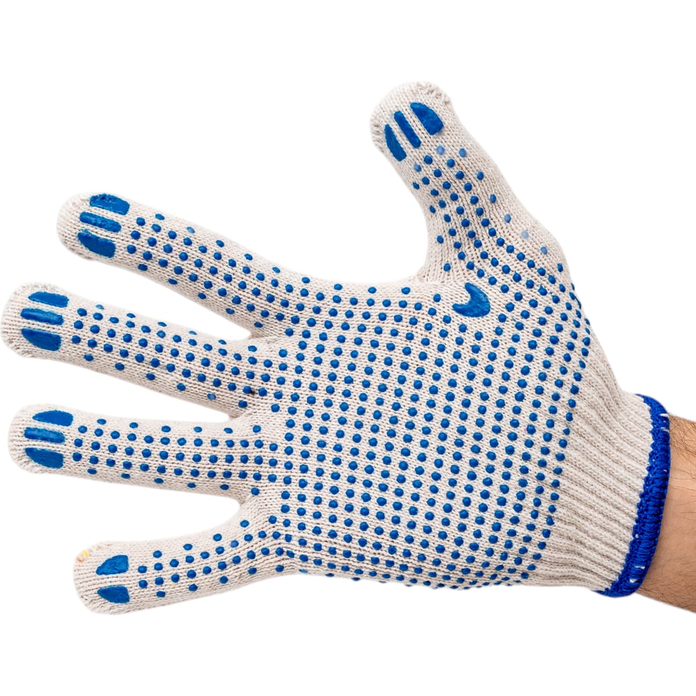 Хлопчатобумажные перчатки ПК Уралтекс «ЭКСТРА», белые, 10 класс, 22 см, с ПВХ "Точка" ПР-02