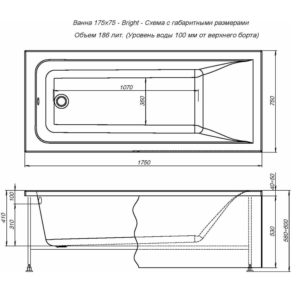 Акриловая ванна на каркасе Aquanet Bright 175х75 00216660