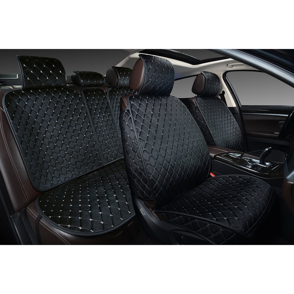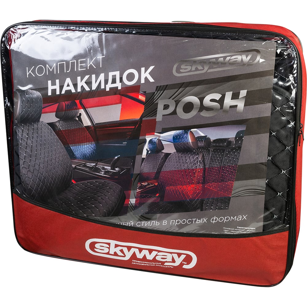 Накидка сиденья SKYWAY POSH вельвет, 5 предметов, черная/белая строчка S01302053