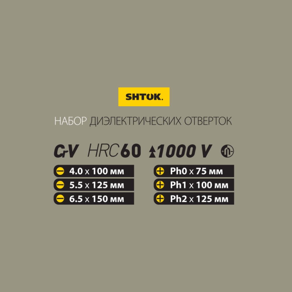 Набор диэлектрических отверток SHTOK 6 шт. картон 1000В 09906