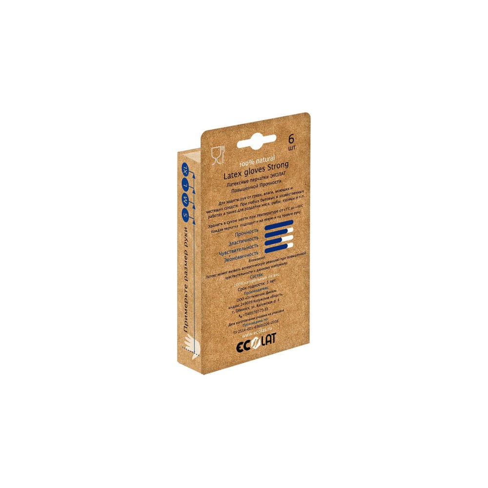 Хозяйственные латексные перчатки EcoLat 6 шт./уп., размер M 72326/M