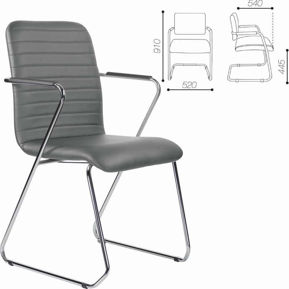 Кресло для приемных и переговорных BRABIX Visit CF-101, хром, экокожа, темно-серое S-0422 532561