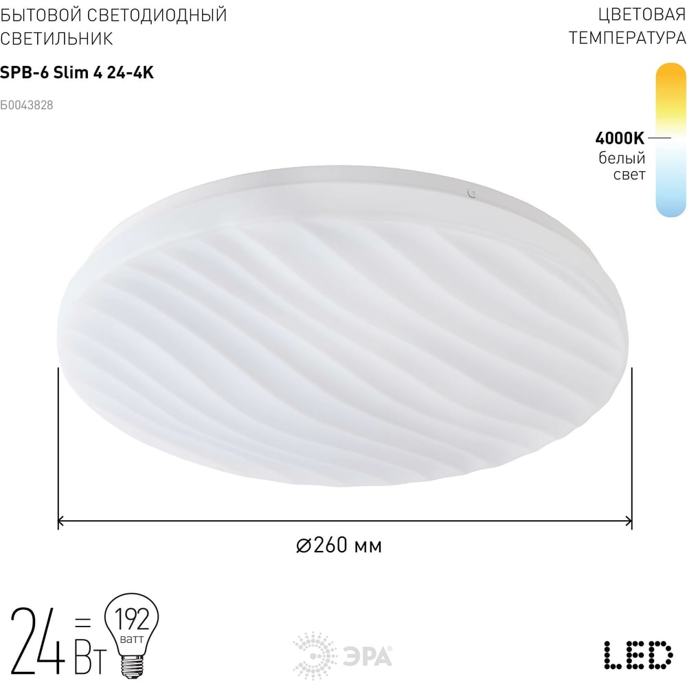 Бытовой светодиодный светильник ЭРА SPB6 Slim 4 Б0043828