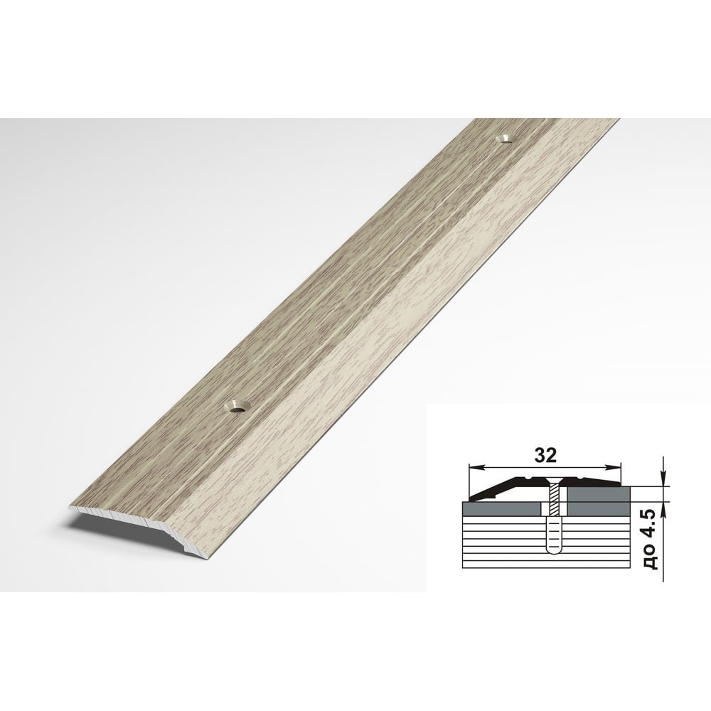 Порог разноуровневый алюминиевый (32 мм; 0.9 м; декоративный; дуб беленый) Лука 00000001778