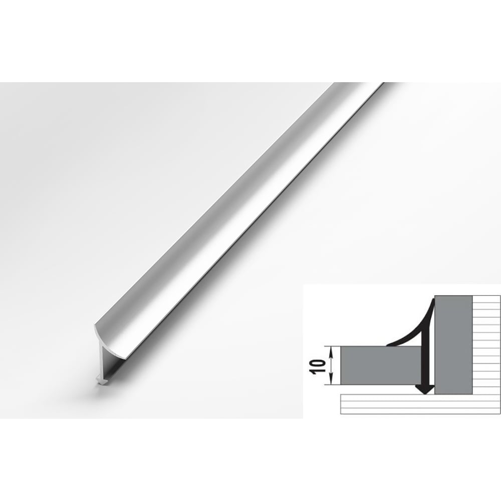 Профиль окантовочный внутренний алюминиевый ЛУКА 10 мм, 2,7 м, 5 шт, Серебро УТ000021369
