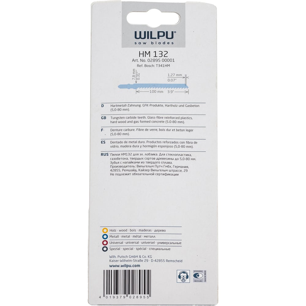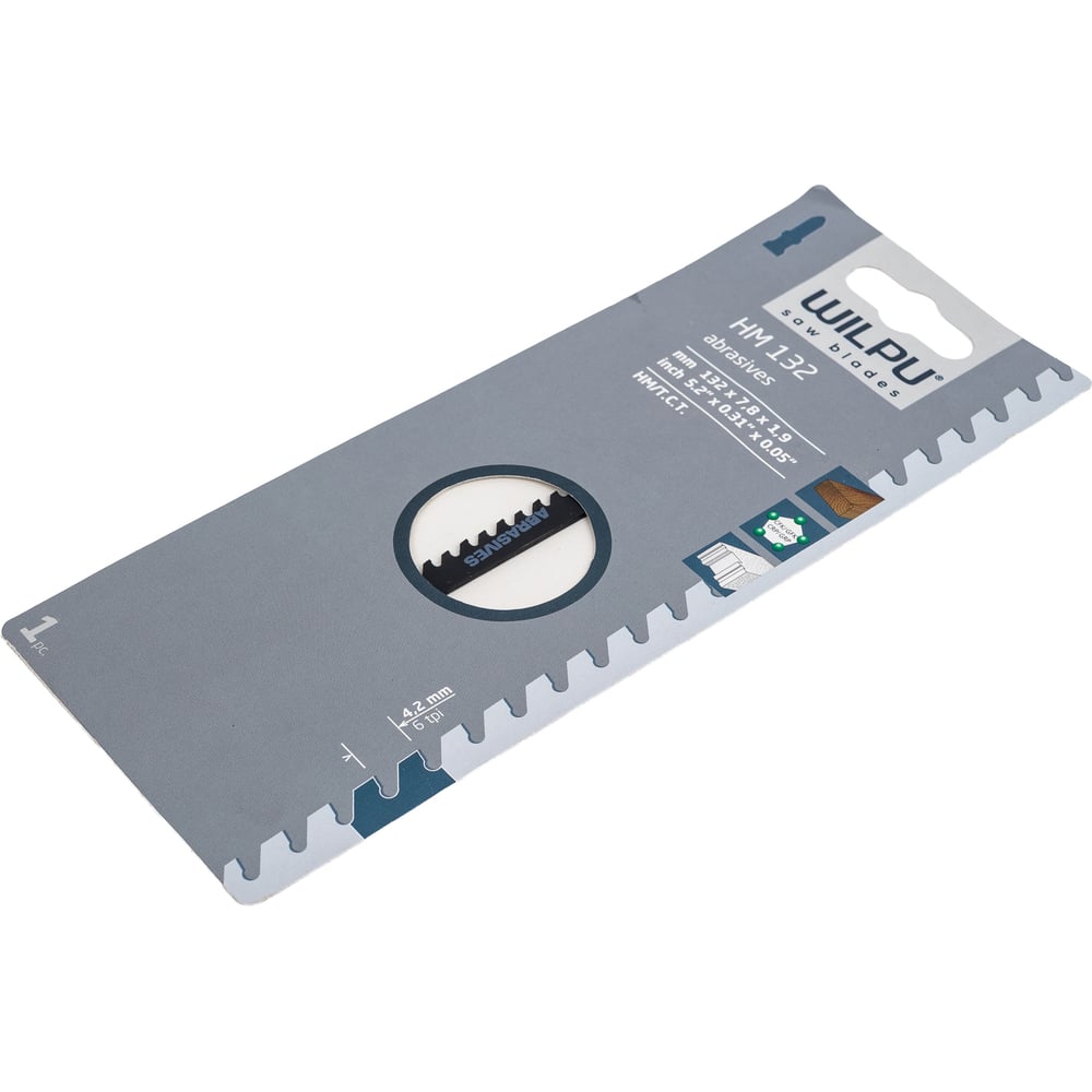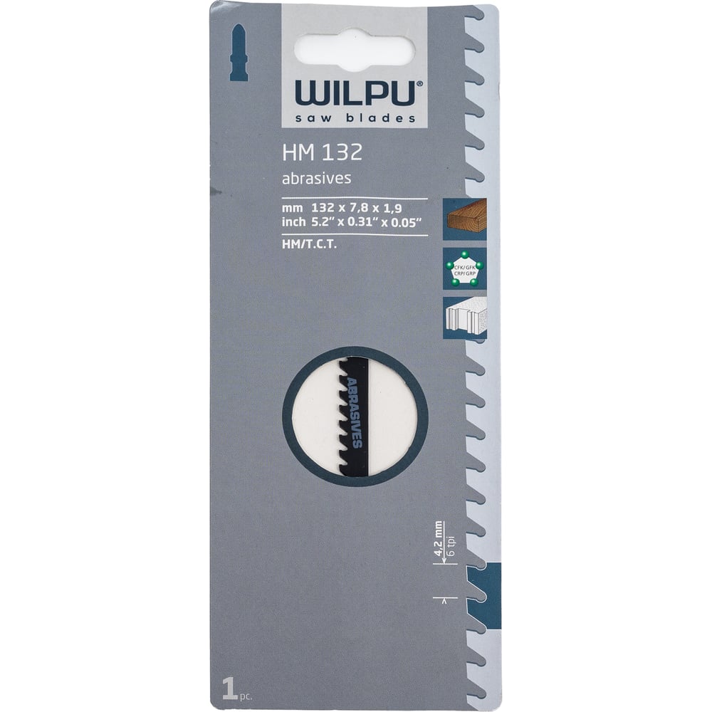 Пилка по стеклопластику и газобетону HM 132 Т341НМ (1 шт; 132х7.8х1.9 мм; 100 мм; 6 TPI; HM) WILPU 0289500001