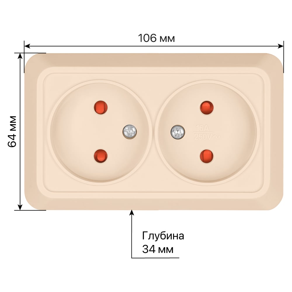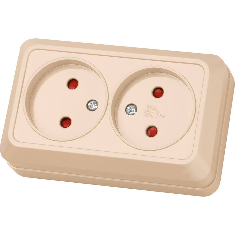 Двойная розетка открытой установки с защитными шторками 2П IP20 10А, слоновая кость TDM ELECTRIC Ладога SQ1801-0065