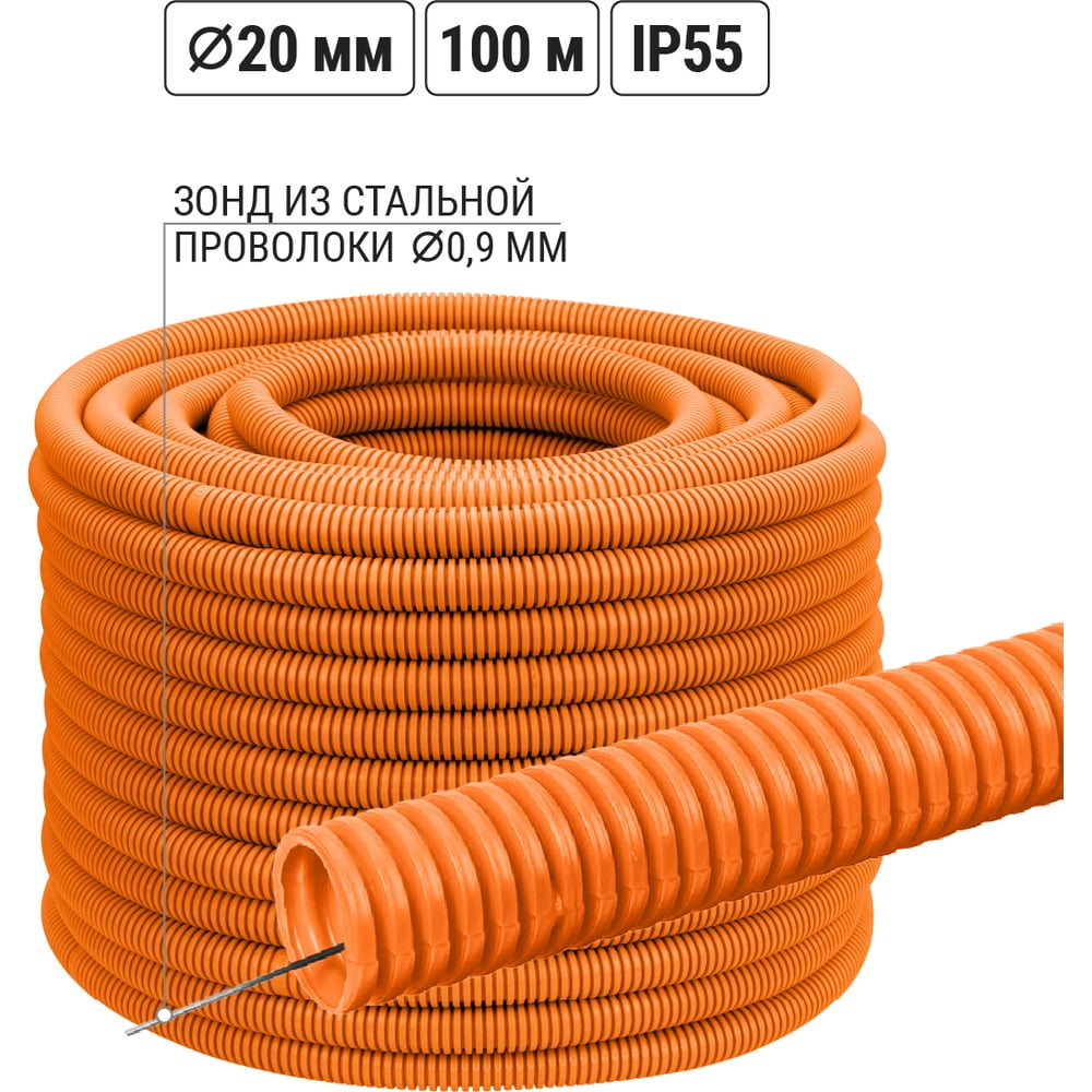 Труба гофрированная TDM ELECTRIC ПНД d 20 с зондом 100 м легкая оранжевая ТDM SQ0413-0012