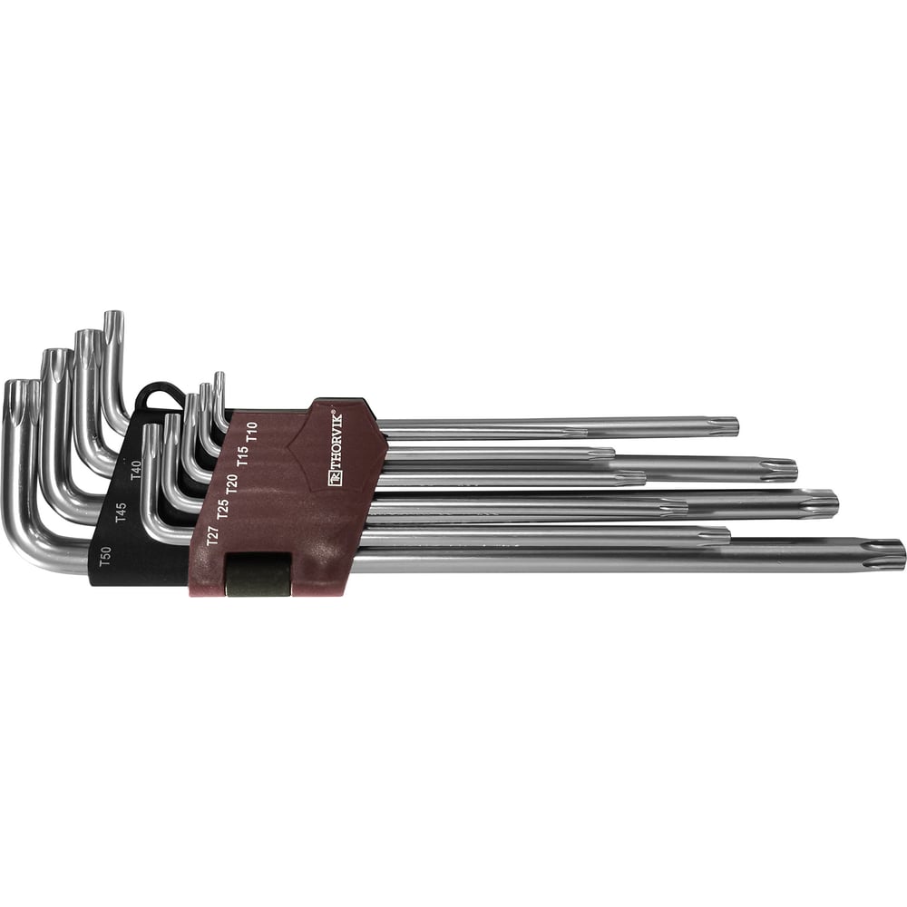 Набор торцевых ключей T-TORX удлиненных с центрированным штифтом Thorvik TTKL9S Т10H-T50H, 9 пр. 53160