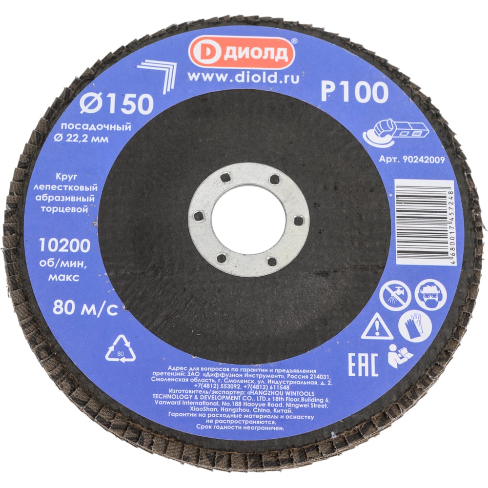 Круг лепестковый абразивный торцевой (150x22.2 мм; Р100) ДИОЛД 90242009