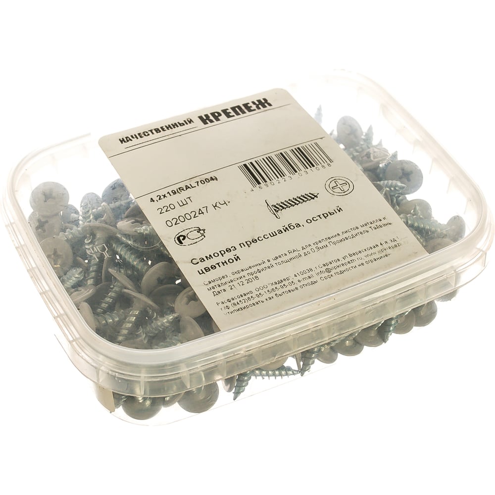 Острый саморез с прессшайбой качественный крепеж 4,2/19 RAL7004 серая (220 шт.) 0200247