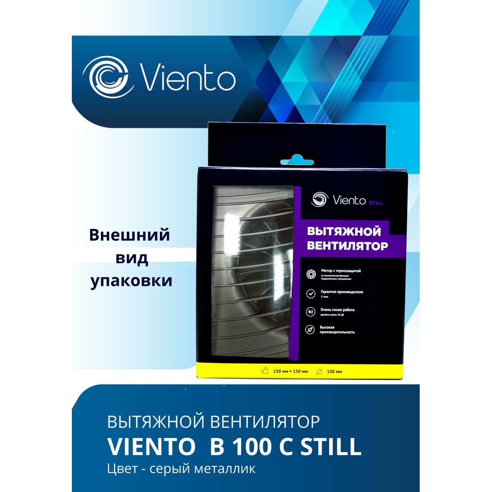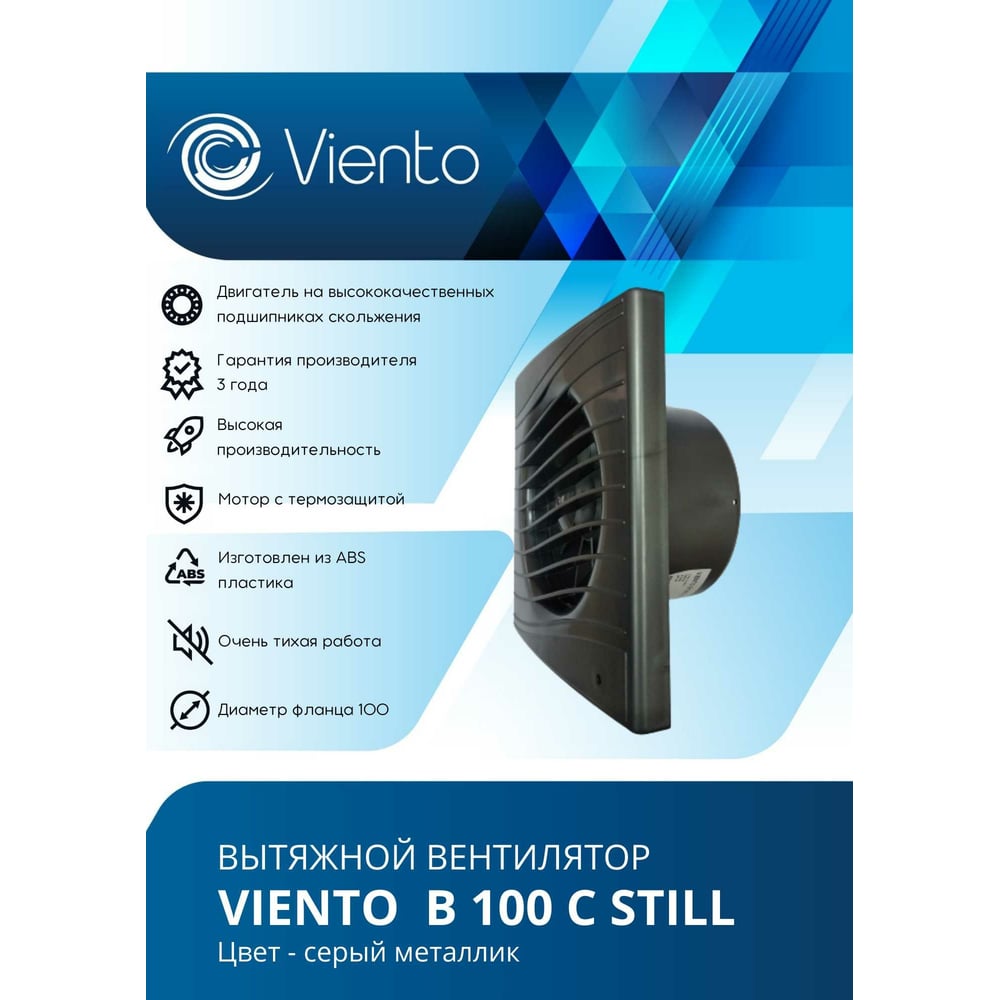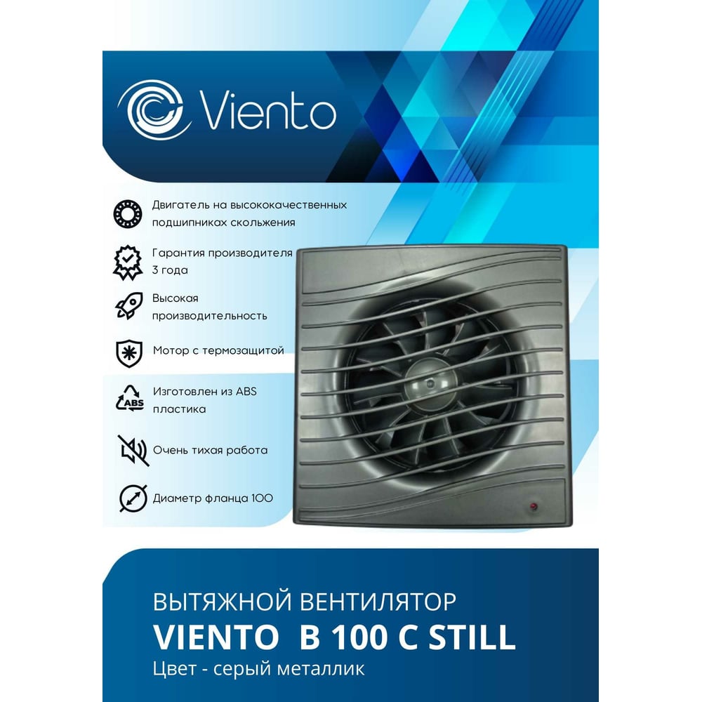 Осевой вытяжной вентилятор ВИЕНТО В100С STILL gray