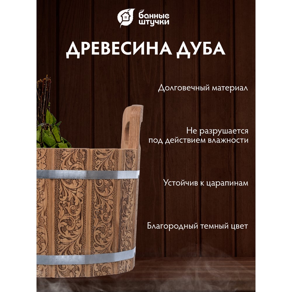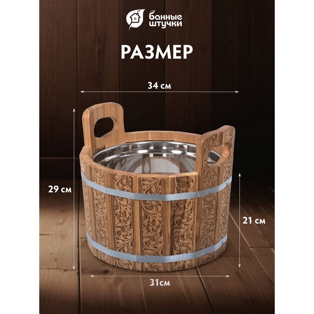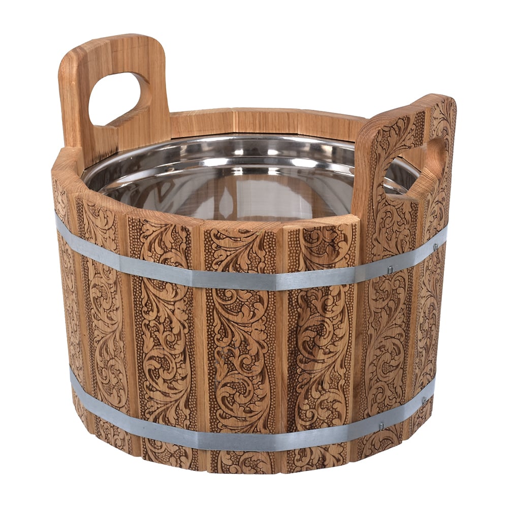 Ушат шайка c нержавеющей вставкой Банные Штучки Цветочный орнамент 10 л, дуб 33372