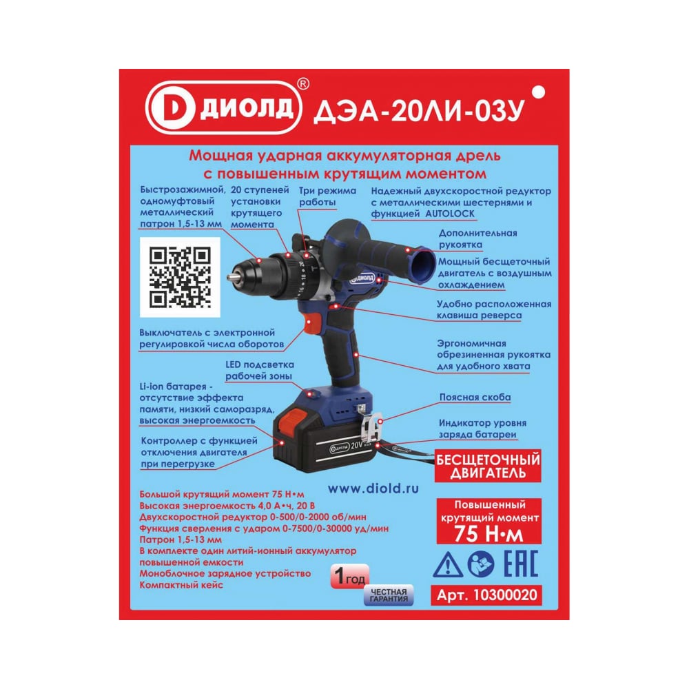 | Индикатор уровня зарядки на корпусе дрели | нет |