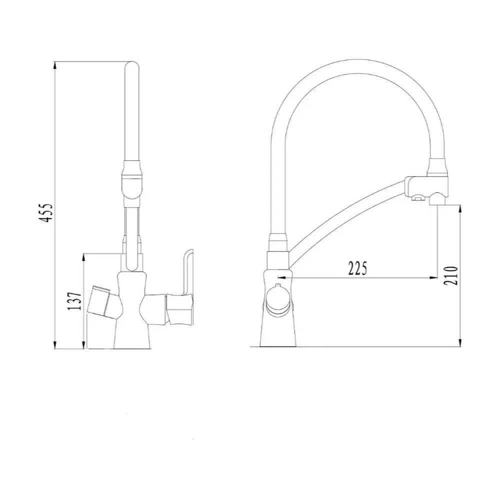 Смеситель для кухни D-Lin с подключением фильтра питьевой воды и гибким изливом, черный D159317-A