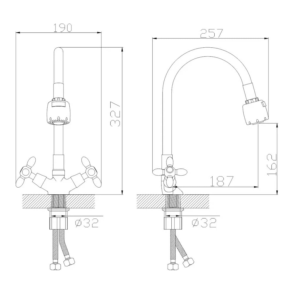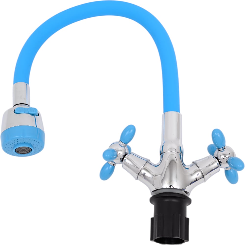 Смеситель для кухни Антей Радуга с 2-мя рукоятками, с силиконовым изливом, крепление гайка, голубой 5770713-ANT