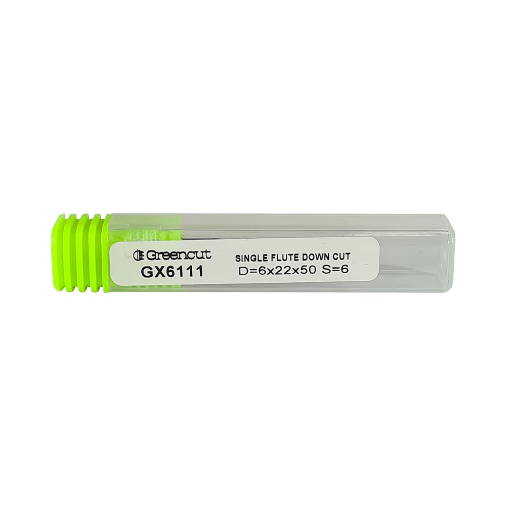 Фреза спиральная однозаходная нижний рез для ЧПУ (6x22x50 мм; S=6 мм; Z1) Greencut GX6111