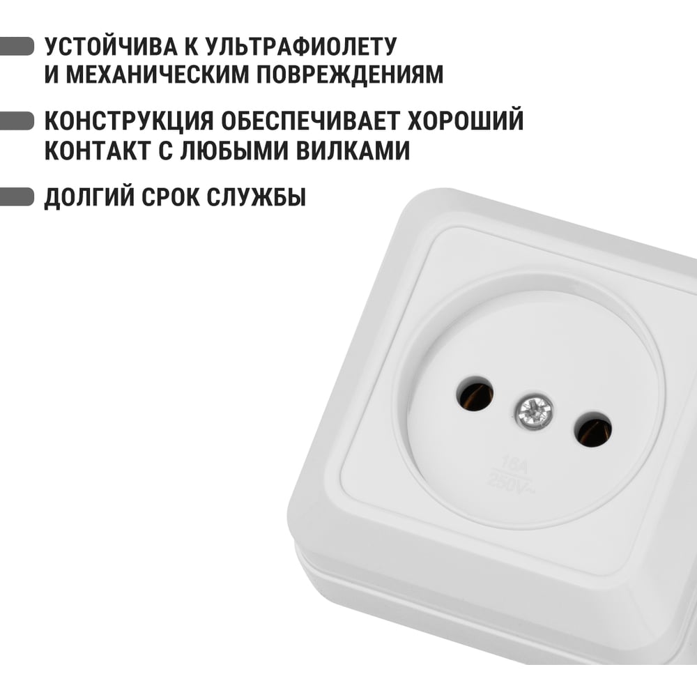 Розетка TDM ELECTRIC 2П открытой установки IP20 10А, белая серия "Ладога" SQ1801-0013