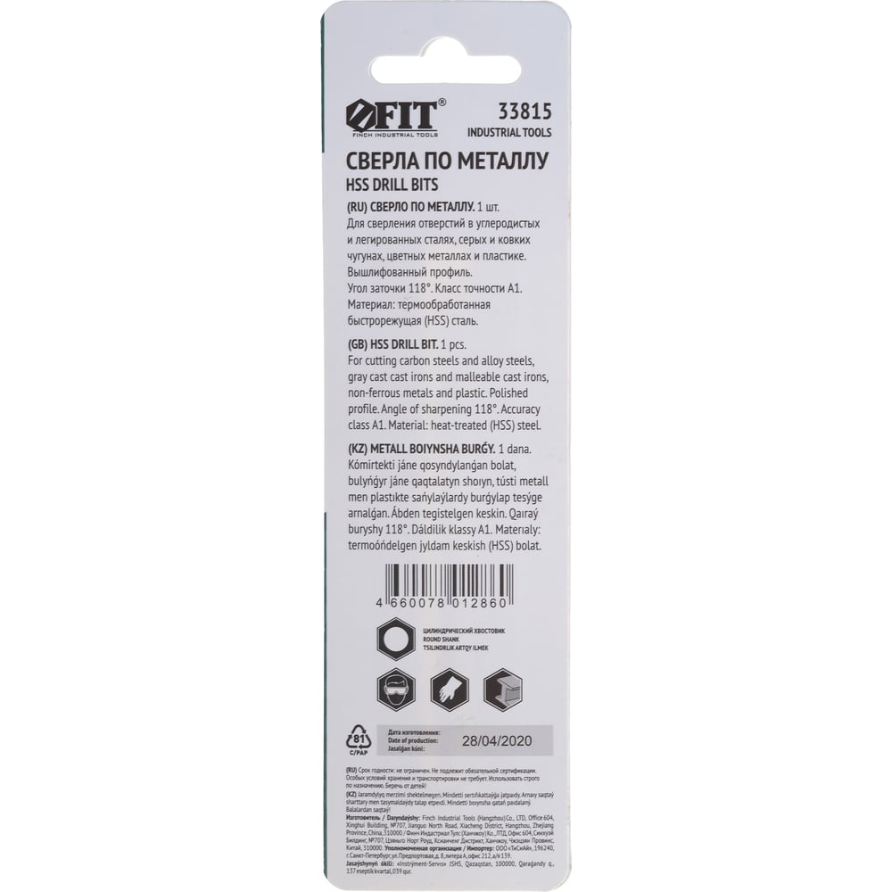 Сверло по металлу HSS полированное в блистере 6.5 мм FIT IT 33815