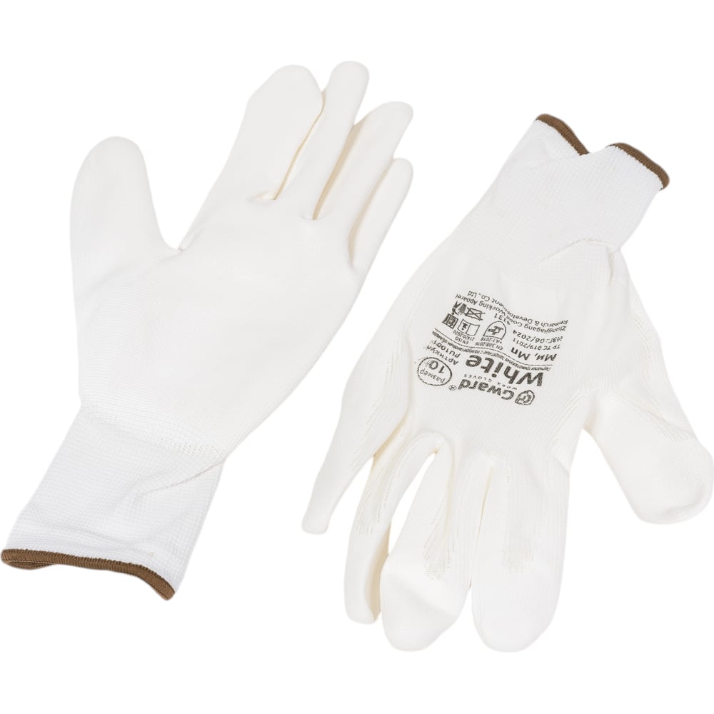 Нейлоновые перчатки с полиуретановым покрытием Gward белые, р.XL 12 пар PU1001W/XL