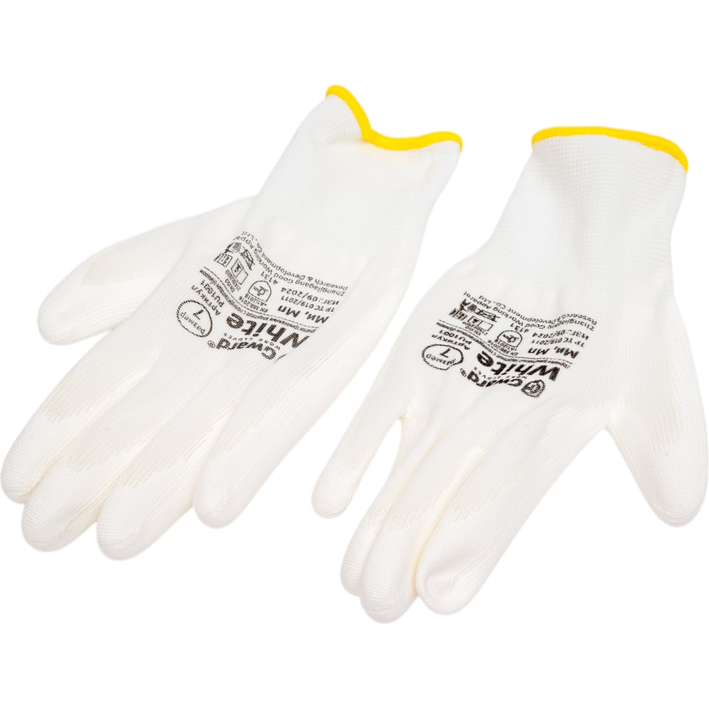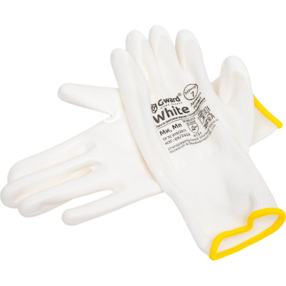 Нейлоновые перчатки с полиуретановым покрытием Gward белые, р.S, 12 пар PU1001