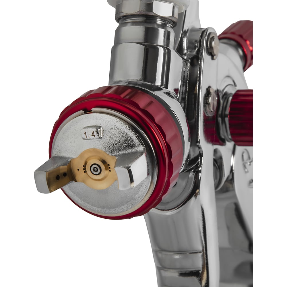 Габариты без упаковки 205х160х230 мм Вид краскораспылитель Класс товара Бытовой Вес нетто 1.08 кг Упаковка коробка Тип соединения рапид (EURO) Давление 4 атм Расход воздуха 420 л/мин Тип инструмента пневмокраскопульт Диаметр сопла 1.4 мм Емкость 0.6 л Расположение бачка верхнее Способ распыления ЛКМ HVLP (High Volume Low Pressure) Наличие редуктора нет