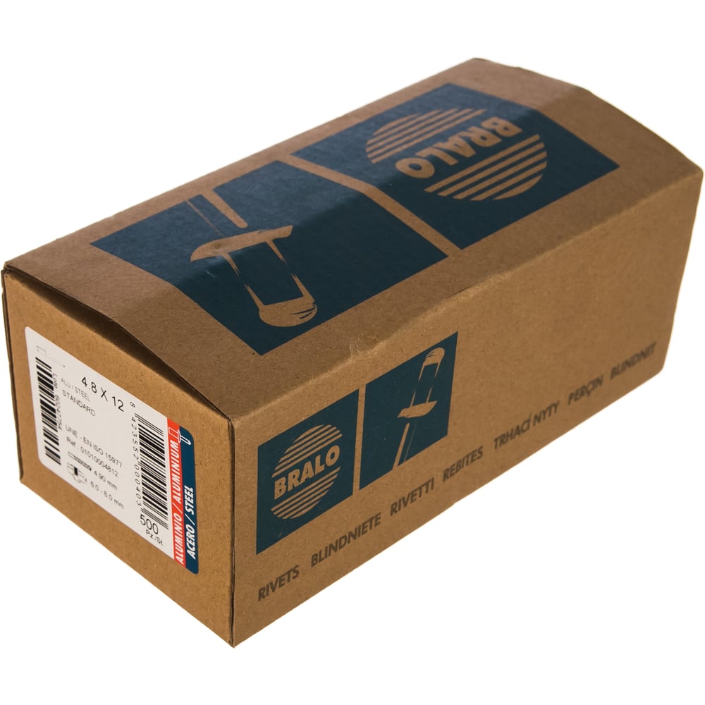 Вытяжная заклепка Bralo алюминий/сталь 4,8х12 стандартный бортик 500шт 01010004812