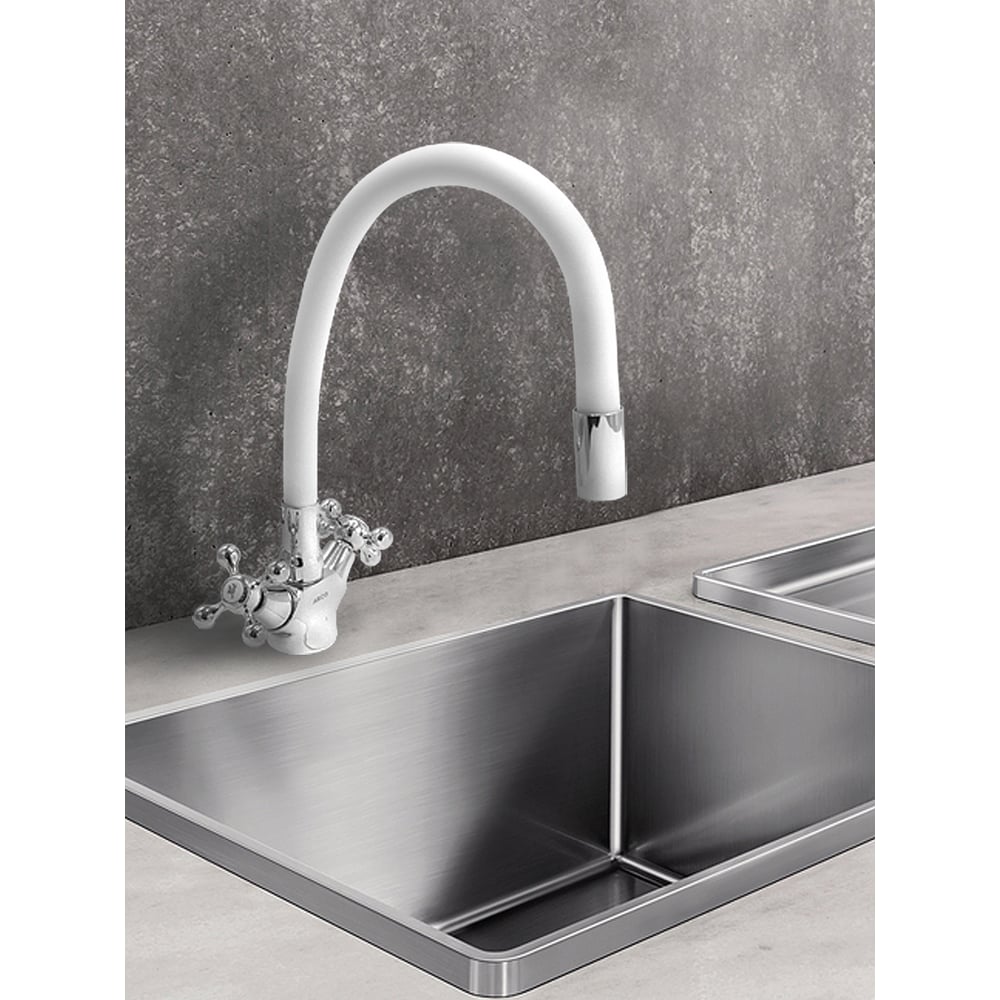 Смеситель для кухни ARCO DA VELLA маховик крест, с гайкой, гибкий излив белый А48(1)07WT 13797