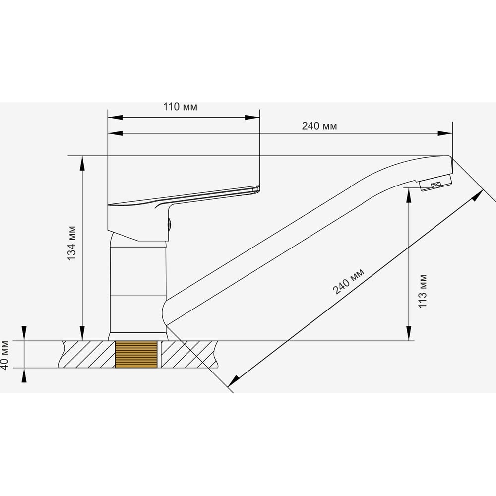 Покрытие глянцевое Цвет хром Тип установки настольный/на раковину Стиль современный Материал корпуса цинк Поворотный излив да Назначение для кухни Тип крепления на гайку Гибкий излив нет Длина излива 240 мм Высота смесителя 134 мм Лейка нет Термостат нет Встраиваемый нет Подводка в комплекте нет Аэратор да Переключатель на фильтр нет Тип смесителя однорычажный Форма излива воды традиционная Запорный клапан керамический картридж Форма смесителя плоская Выдвижной излив нет Излив есть Складной нет С щеткой нет Двойной излив нет Диаметр картриджа 35 мм Размер крепления G1/2 Направление струи вертикальное ГОСТ/DIN нет Высота излива 113 мм Мах толщина столешницы 40 мм Расположение рычага сверху Расположение термостата без термостата