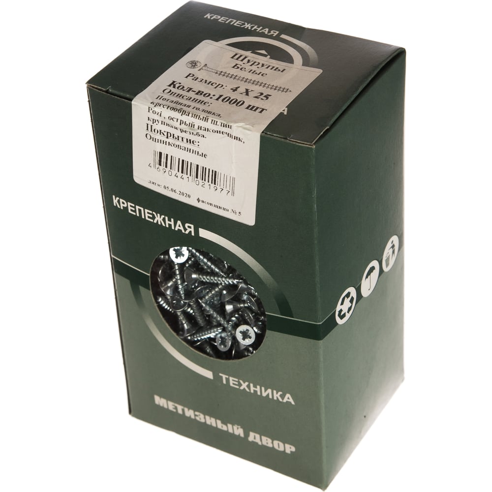 Потайной универсальный шуруп Метизный двор 4,0x25, оцинкованный, 1000 шт. 4690441021977