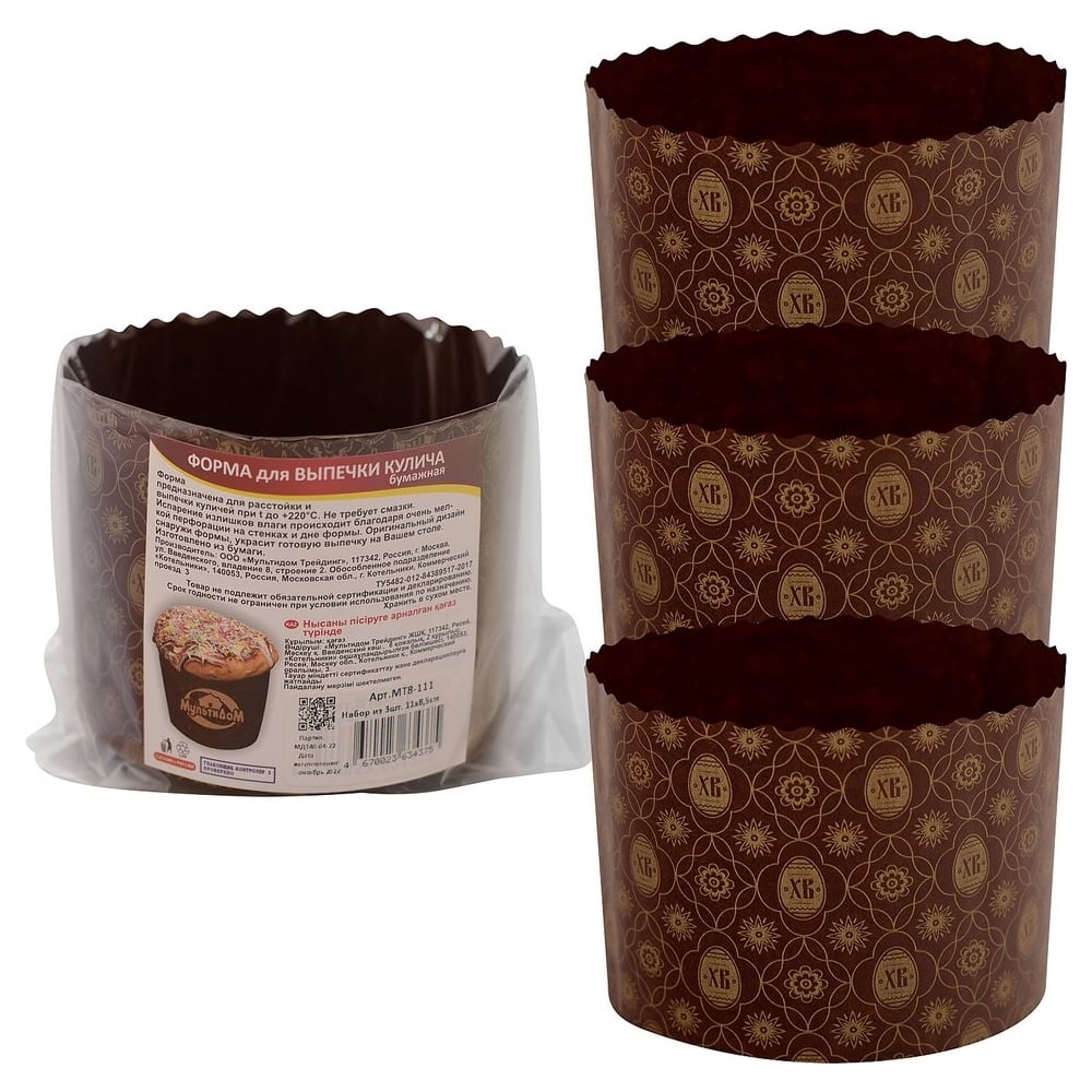 Форма для выпечки кулича МУЛЬТИДОМ бумажная, набор 3 шт, диаметр 11 см, высота 8.5 см МТ8-111