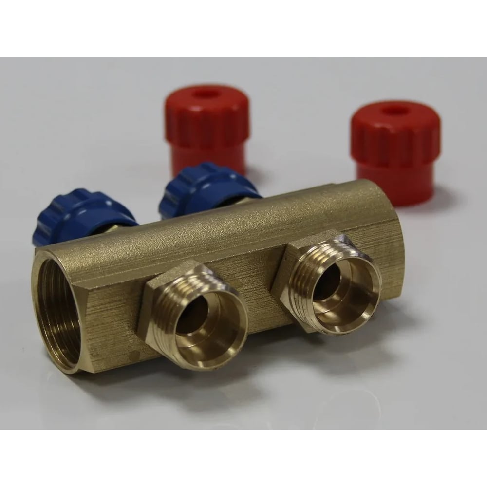 Коллектор ДТРД с регулирующими вентилями ВР 3/4 на 2 выхода НР 1/2, межосевое 35 мм 410181В