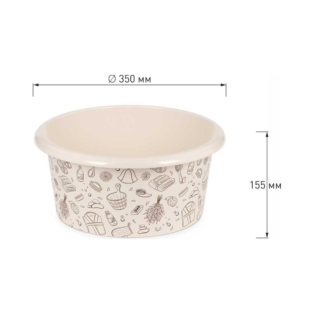 Высота 155 мм Длина 350 мм Материал полипропилен Объем 10 л Ширина 350 мм Цвет бежевый Вес нетто 0.28 кг Форма круглый Палитра бежевый Ручки нет