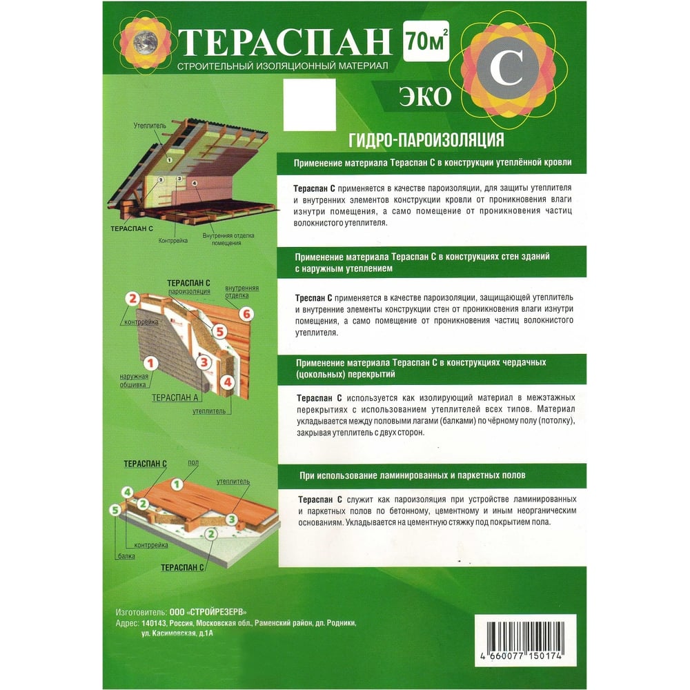 Паро-гидроизоляционный материал ТЕРАСПАН С ЭКО 70 кв. м 4660077150174