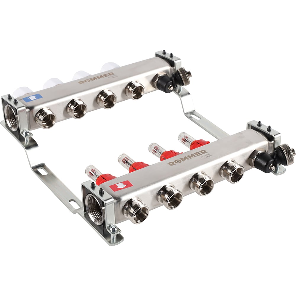 Коллектор из нержавеющей стали ROMMER с расходомерами, с клапаном вып. воздуха и сливом, 4 выхода Rms-1201-000004 RG0091LAMS6RNH